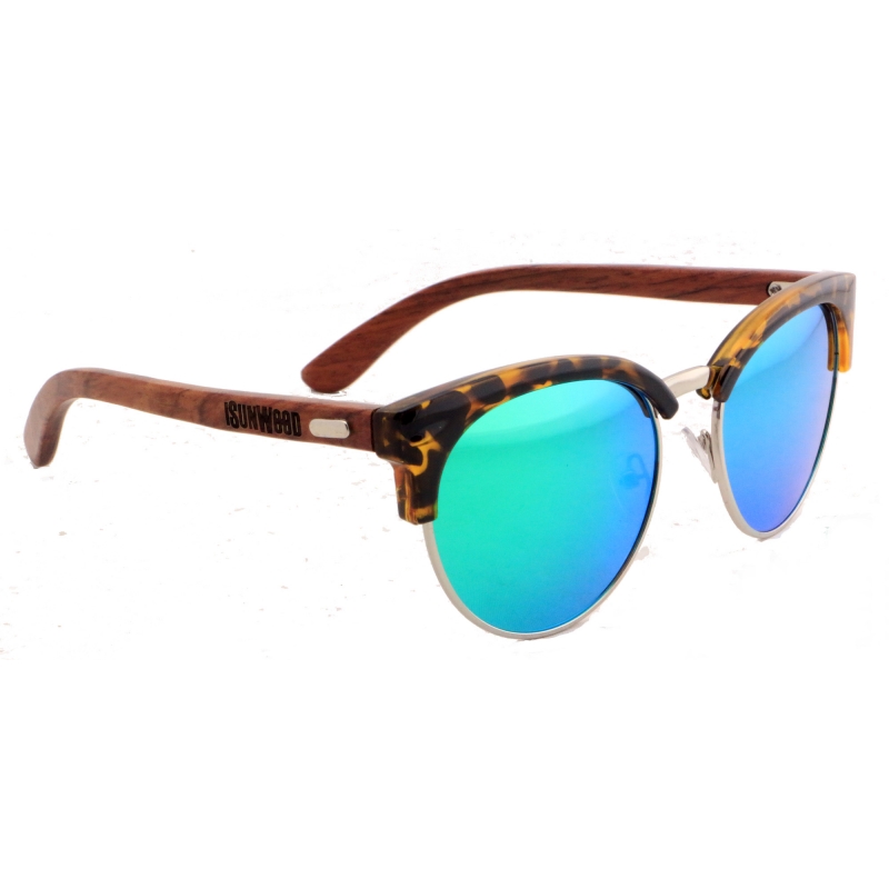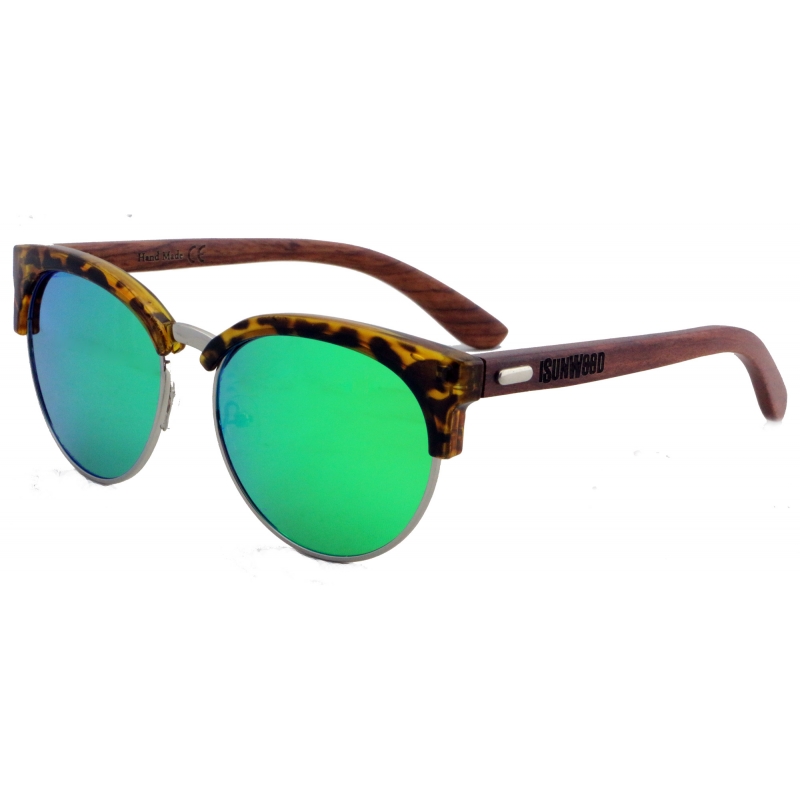 Modelo Atik, corpo cor selvagem e monte de metal prata, pino de tropical madeira e polarizado lentes efeito espelho verde.